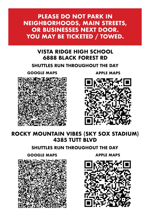 VIBES STADIUM PARKING: Vibes Baseball Club, North lot at Barnes and Charlotte (Look for Tent Crusade signage)